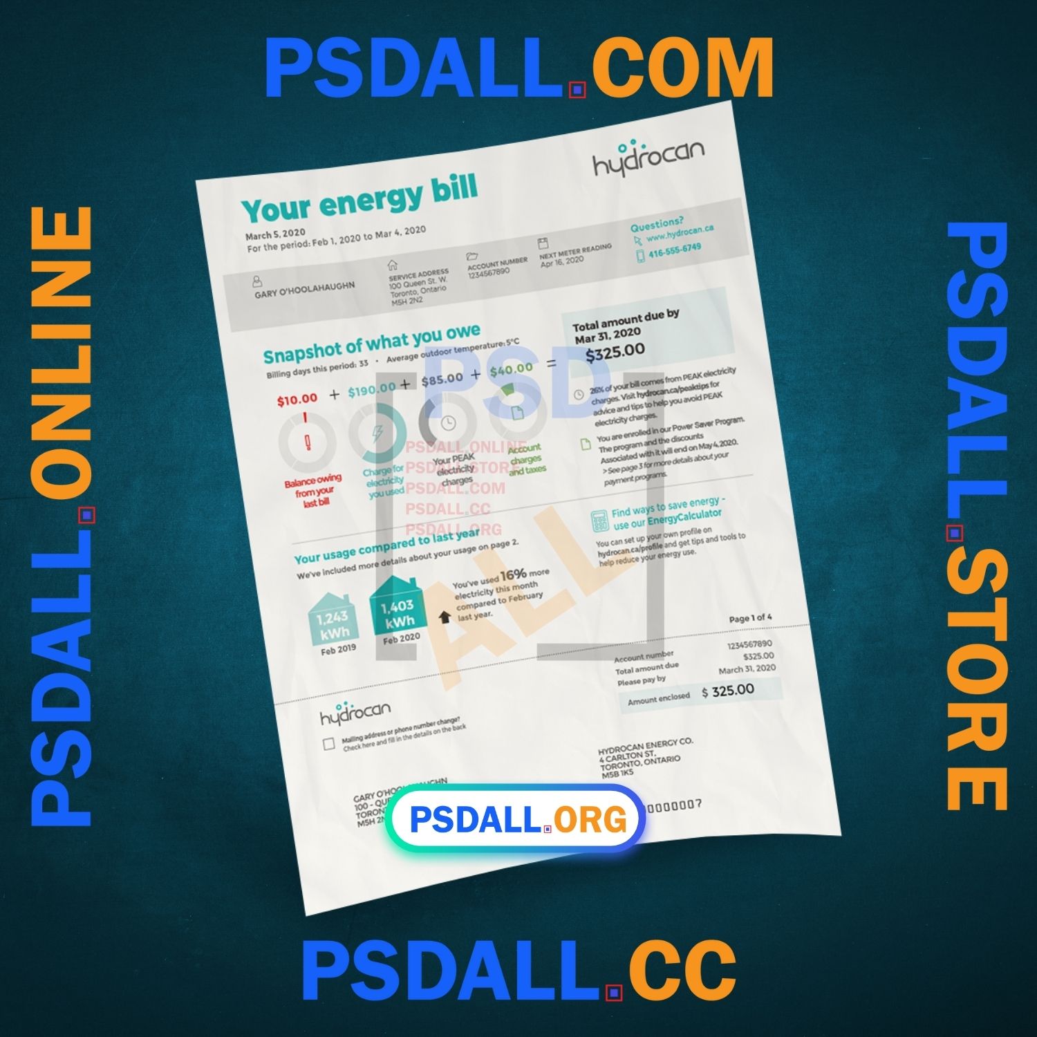 Canada Ontario Utility Bill PSD Template at the best price.