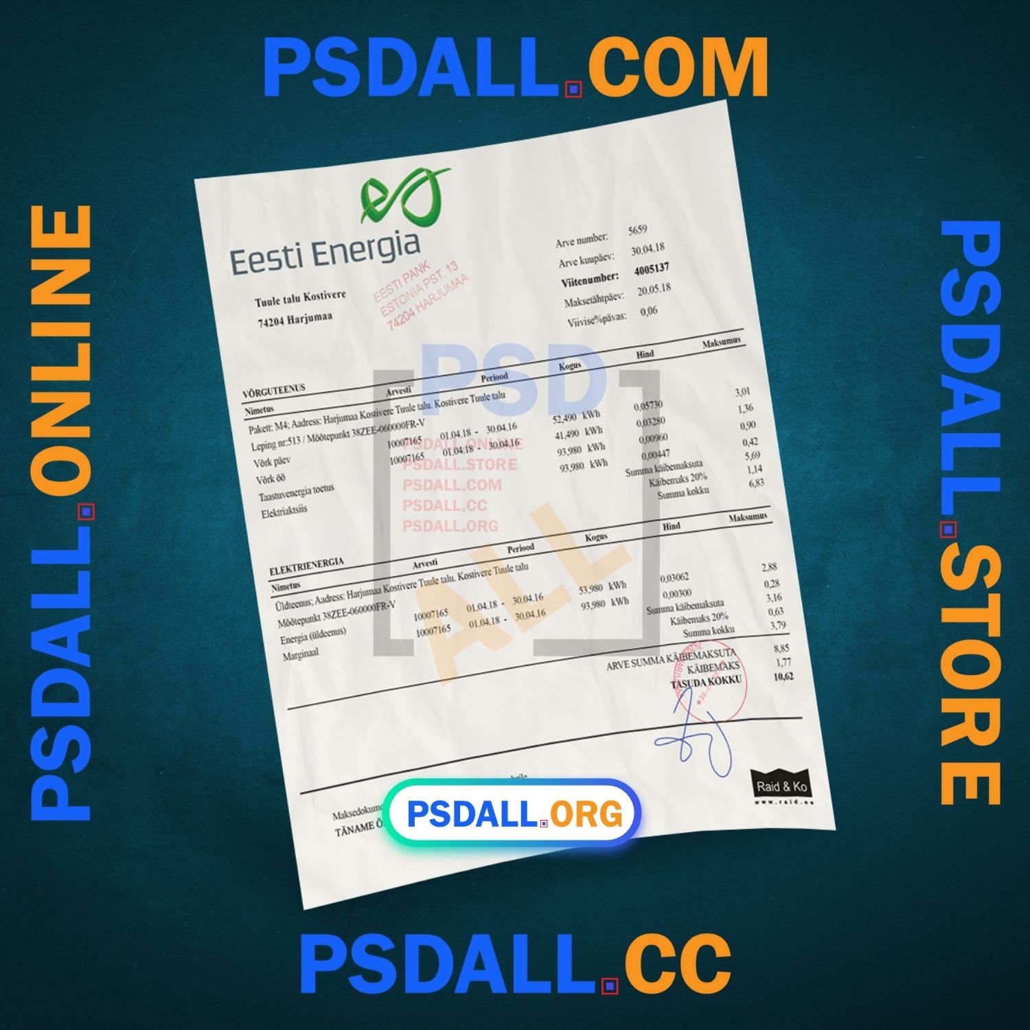 Estonia Eesti Energia Bill PSD Template at the best price.