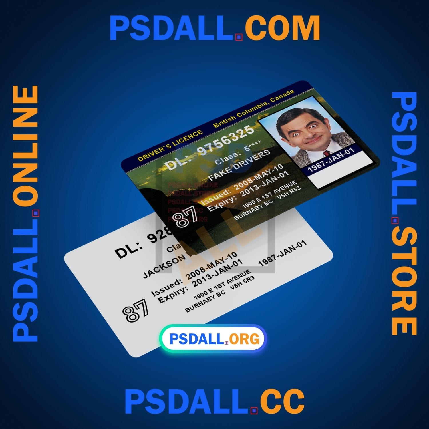 Canada British Columbia Driver License PSD Template V1 at the best price.