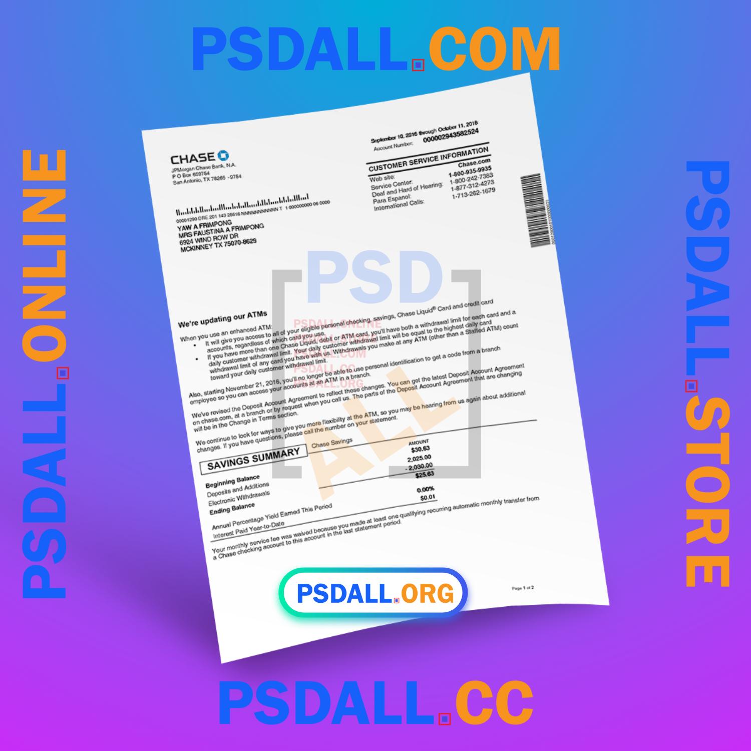 Chase Bank Statement PSD Template at the best price.