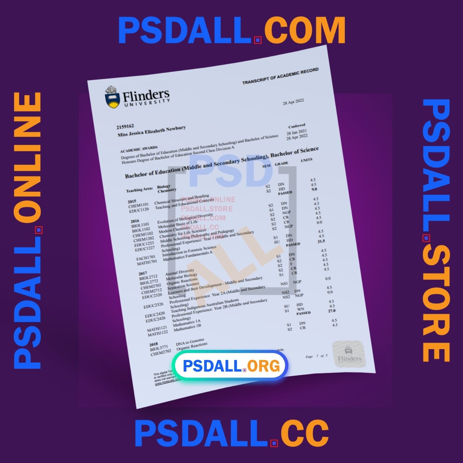 Flinders University Transcript Template in PDF Format at the best price.