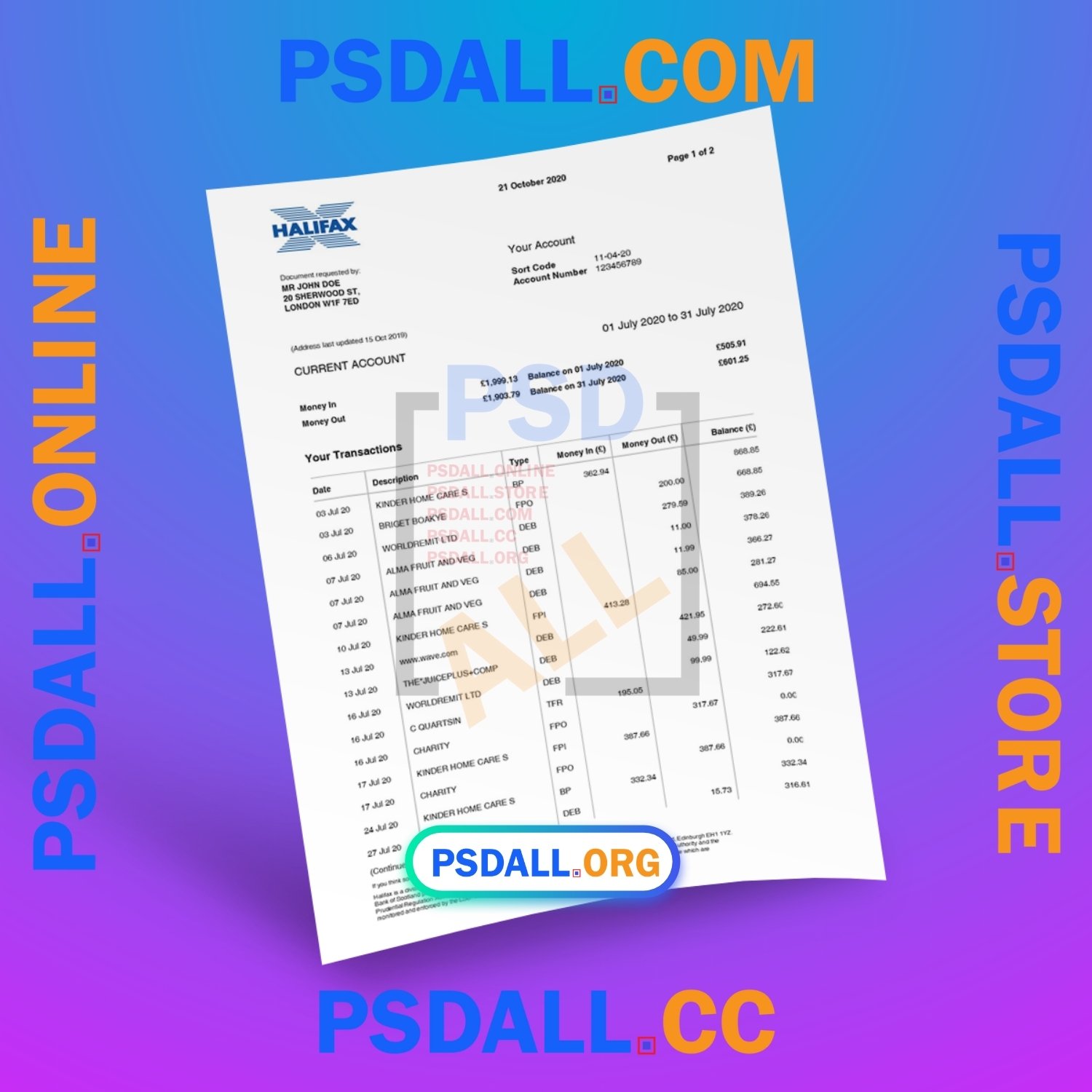 Halifax Bank Statement Template in PDF Format at the best price.