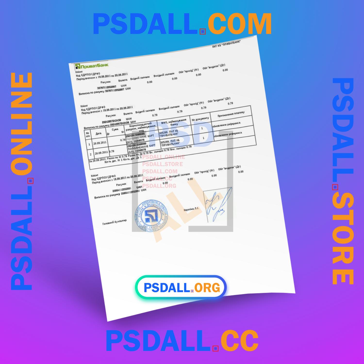 Ukraine Privat Bank Statement PSD Template at the best price.
